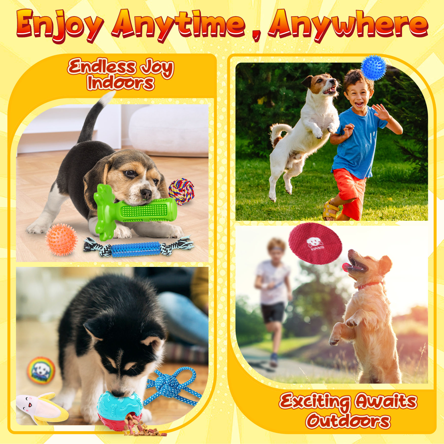 - Variety is Our Game: Firstly, offering as many types of fun as a playground. Secondly, protecting your furniture, a win-win for both you and your dog. Finally, no need to mull over countless shelves; we’ve combined an all-in-one pack for you