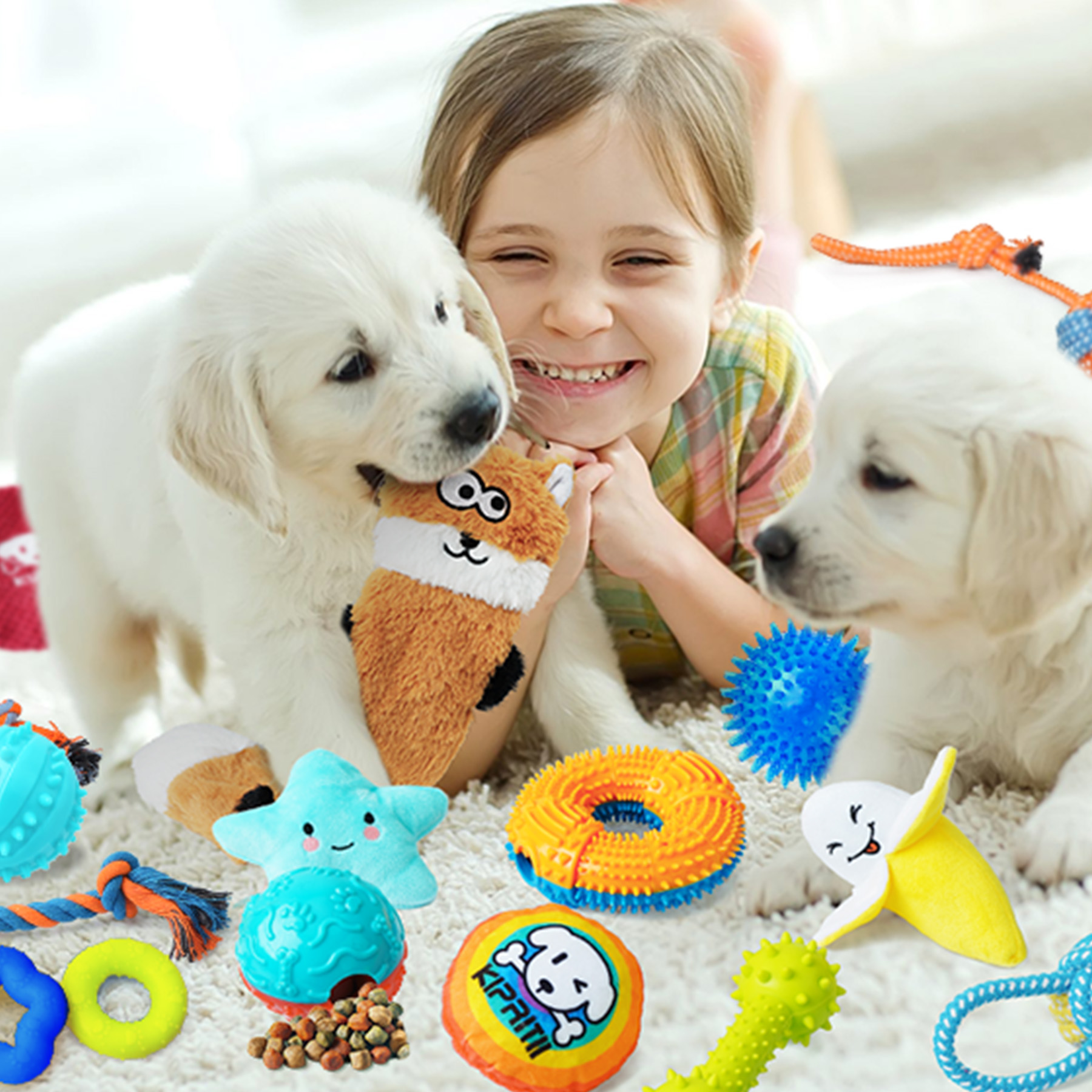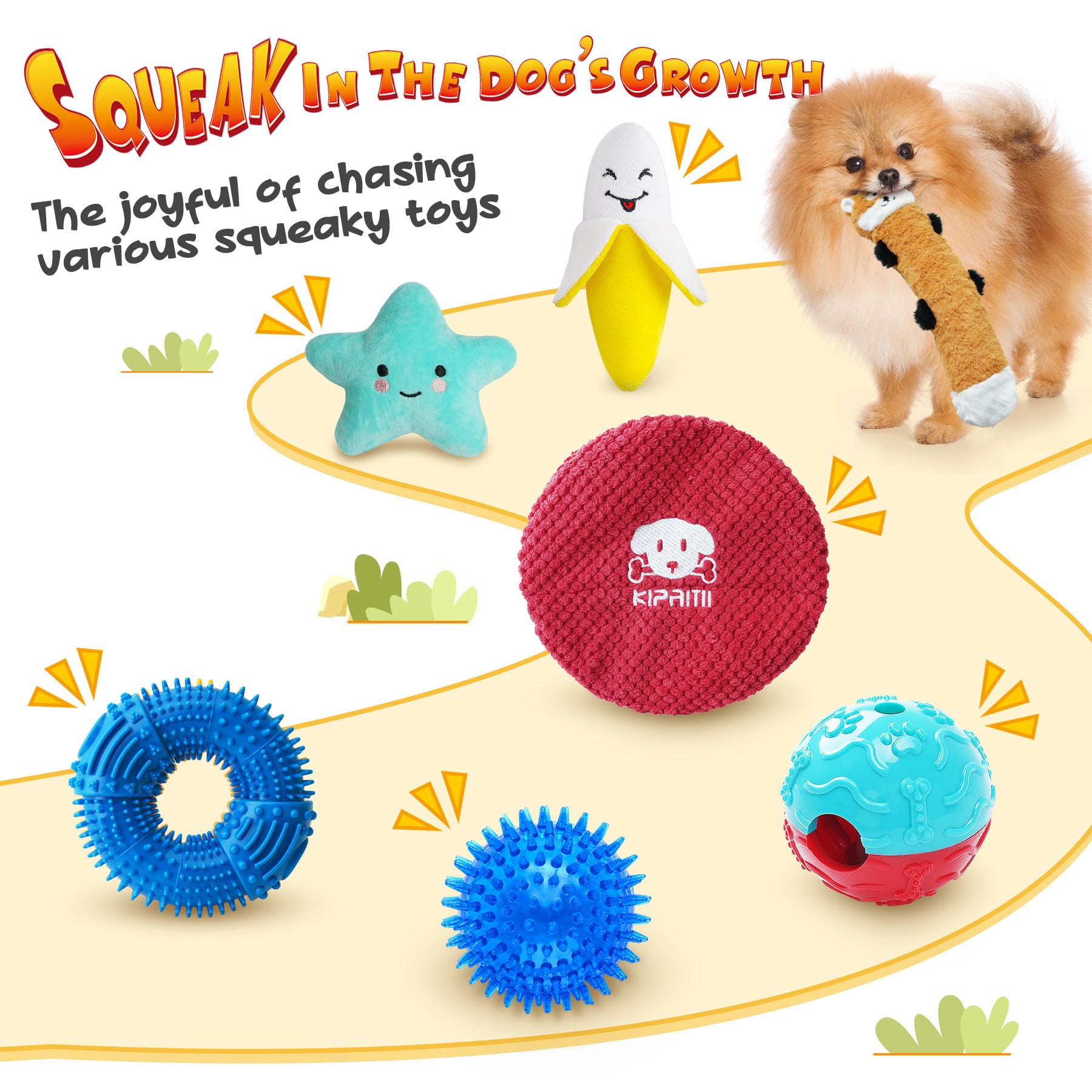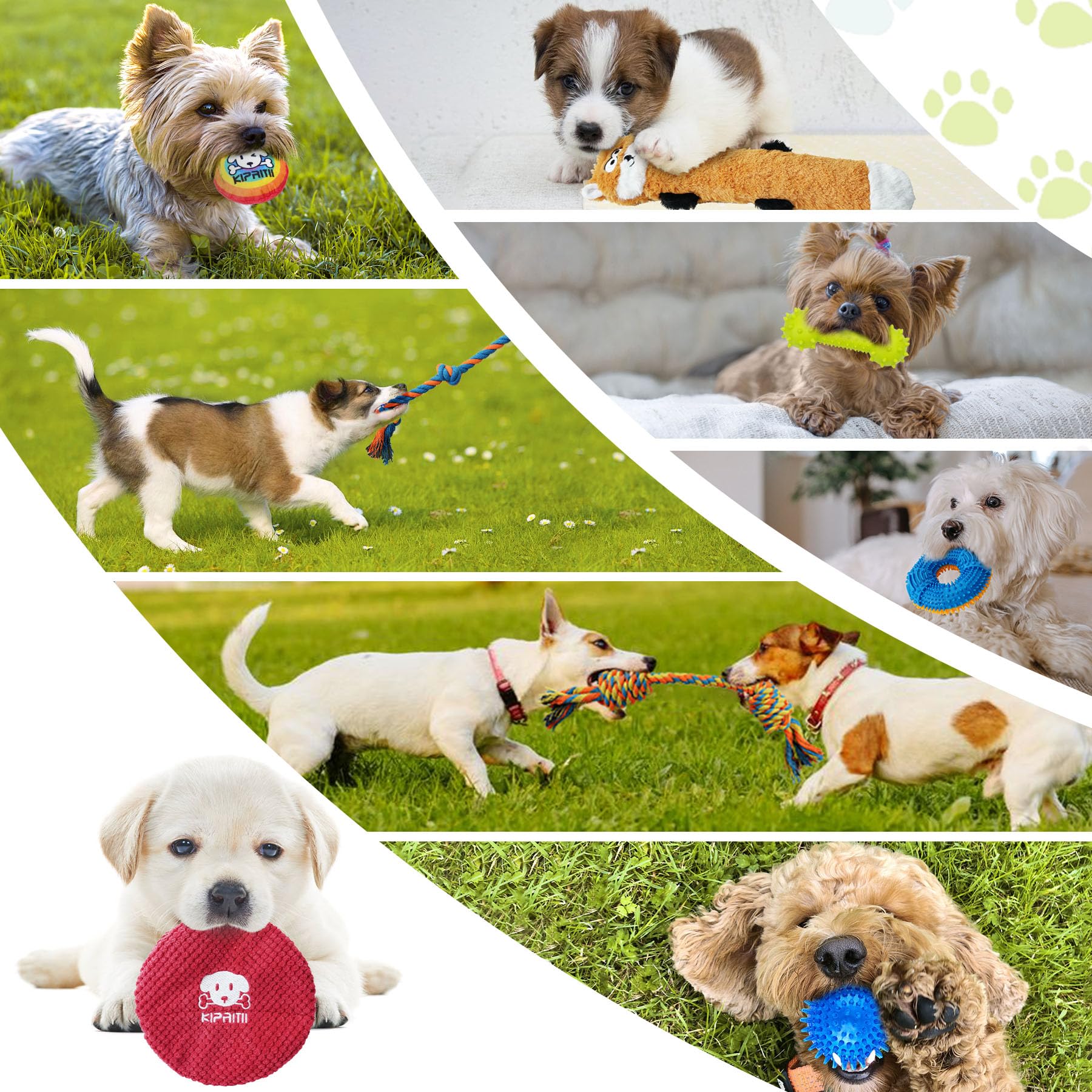 - 24/7 Joy: You always want your dog to be happy 24/7 – KIPRITII dog toys pack can ensure this. Includes interactive rope & fetching toys, puppy teething and chew toys, training treat balls, and squeaky toys to stimulate curiousness