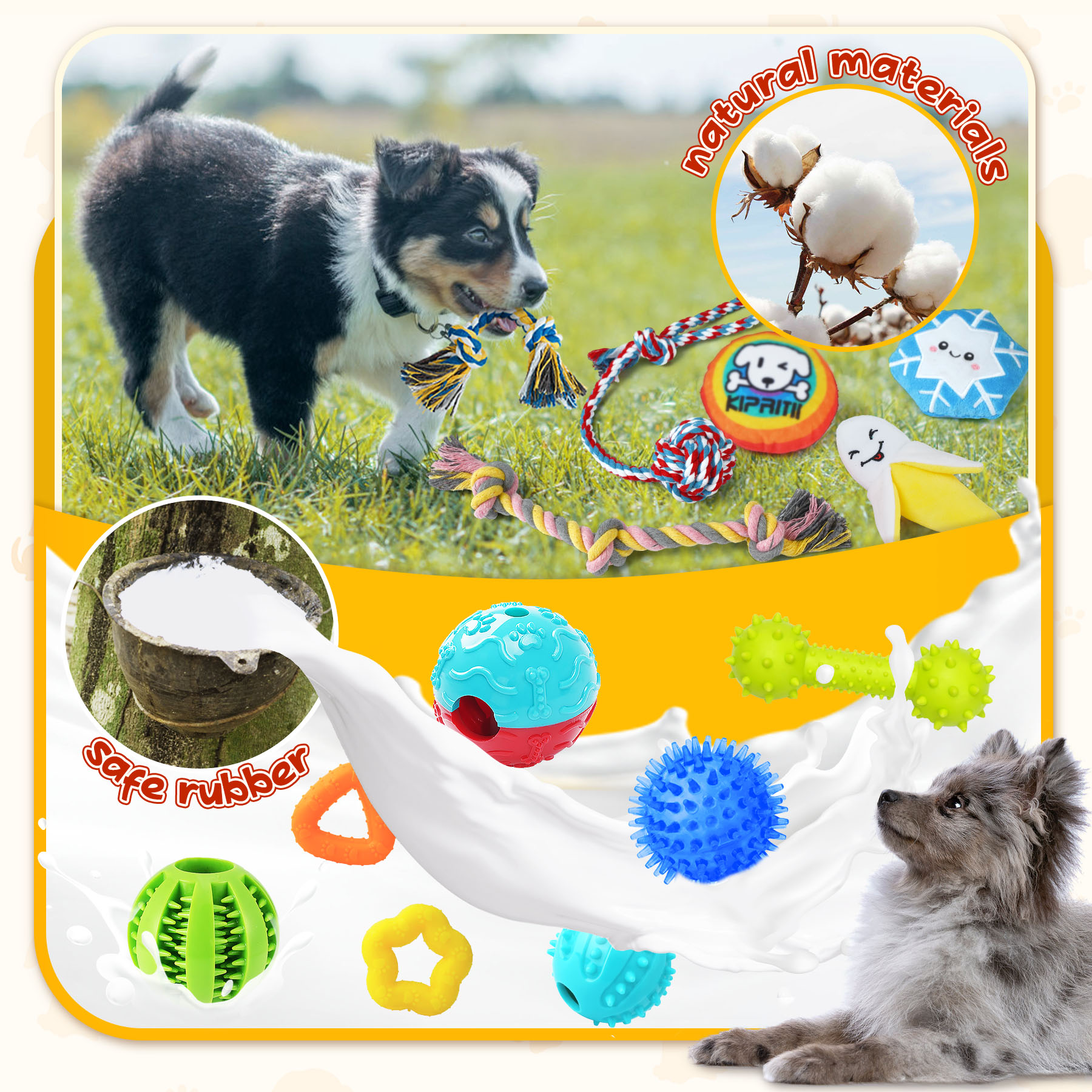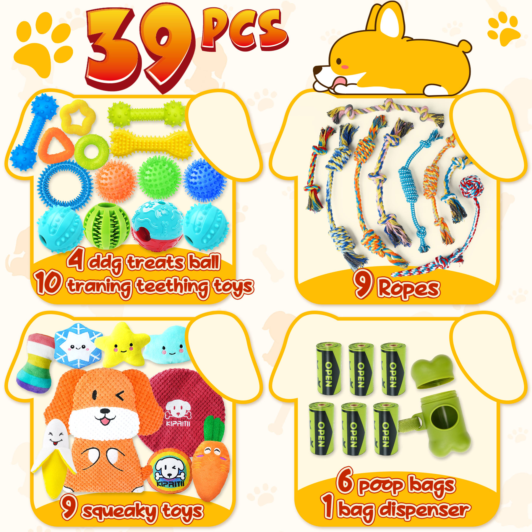 KIPRITII Puppy Toys for Dog Teething-39 Pack Exclusive Puppy Dog Chew Toys for Boredom with Rope Toys, Dog Treat Balls & Dog Toy for Puppy and Small Dogs, Hold a Bottle