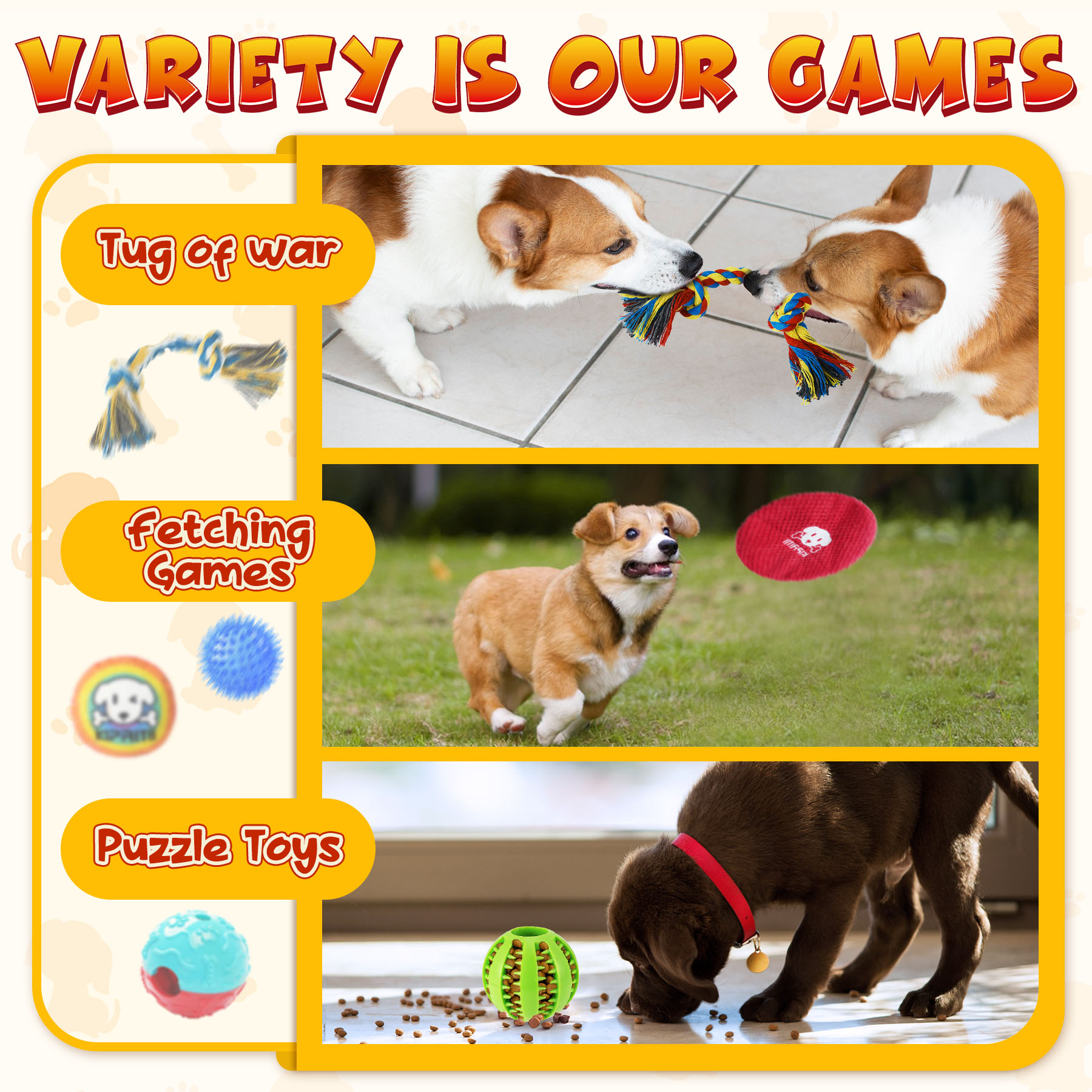 - Variety is Our Game: Firstly, offering as many types of fun as a playground. Secondly, protecting your furniture, a win-win for both you and your dog. Finally, no need to mull over countless shelves; we’ve combined an all-in-one pack for you