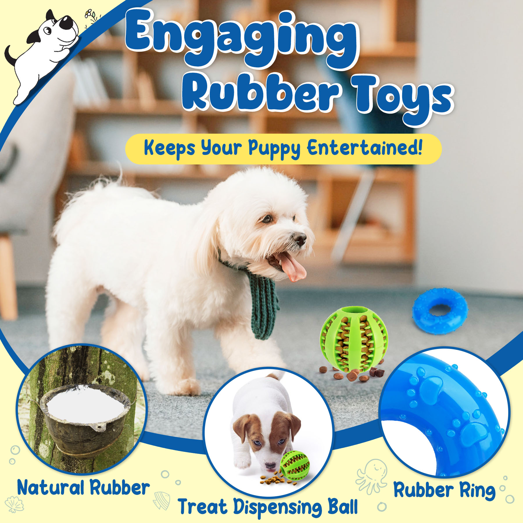 - Explore Various Benefits: Puppy chew toys for teething keep them engaged, releasing vitality and reducing stress. As your pup gnaws on squeaky toys with varied textures and sounds, they enjoy playful activities, boosting interest and cognitive growth